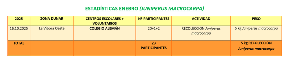 ESTADÍSTICA – RECOLECCIÓN DE SEMILLAS Y FRUTOS EN ENTORNOS DUNARES
